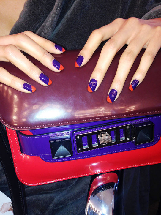 Косые линии френча яркого оттенка привнесут в ваш образ ноты броской неординарности и креативности.
