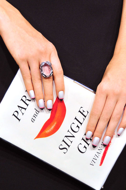 Неординарная интерпретация френча, которая введет вас в заблуждение. V-образная форма улыбки френча создает эффект визуального обмана: мало того, что ногтевая пластина кажется длиннее, так и форма кажется не овальной, а заостренной.