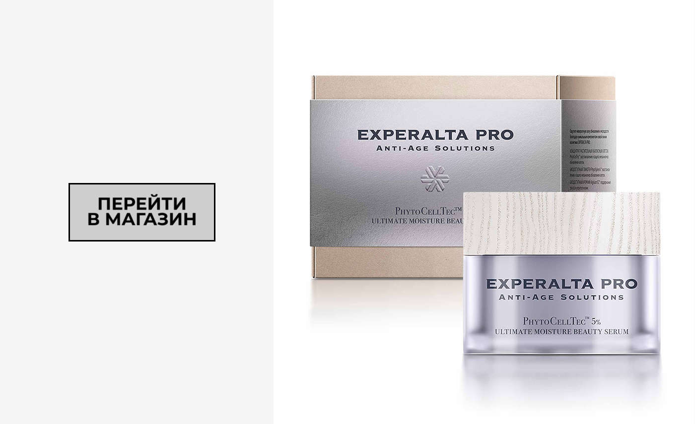 Experalta Pro Anti-Age Solutions заряжает клетки кожи энергией, системно поддерживая их работу и откладывая появление признаков старения. В ее составе сбалансированные активные компоненты. PhytoCellTec™ – инновационный комплекс на основе каллусных (стволовых) клеток швейцарского яблока. Он защищает собственные стволовые клетки кожи, продлевая их молодой режим работы и поддерживая способность к обновлению. В сыворотке его концентрация составляет 5%, что обеспечивает выраженное антивозрастное действие. Растительный фитогликоген из сладкой кукурузы активирует синтез коллагена, эластина и гиалуроновой кислоты, сохраняя кожу упругой и увлажненной.