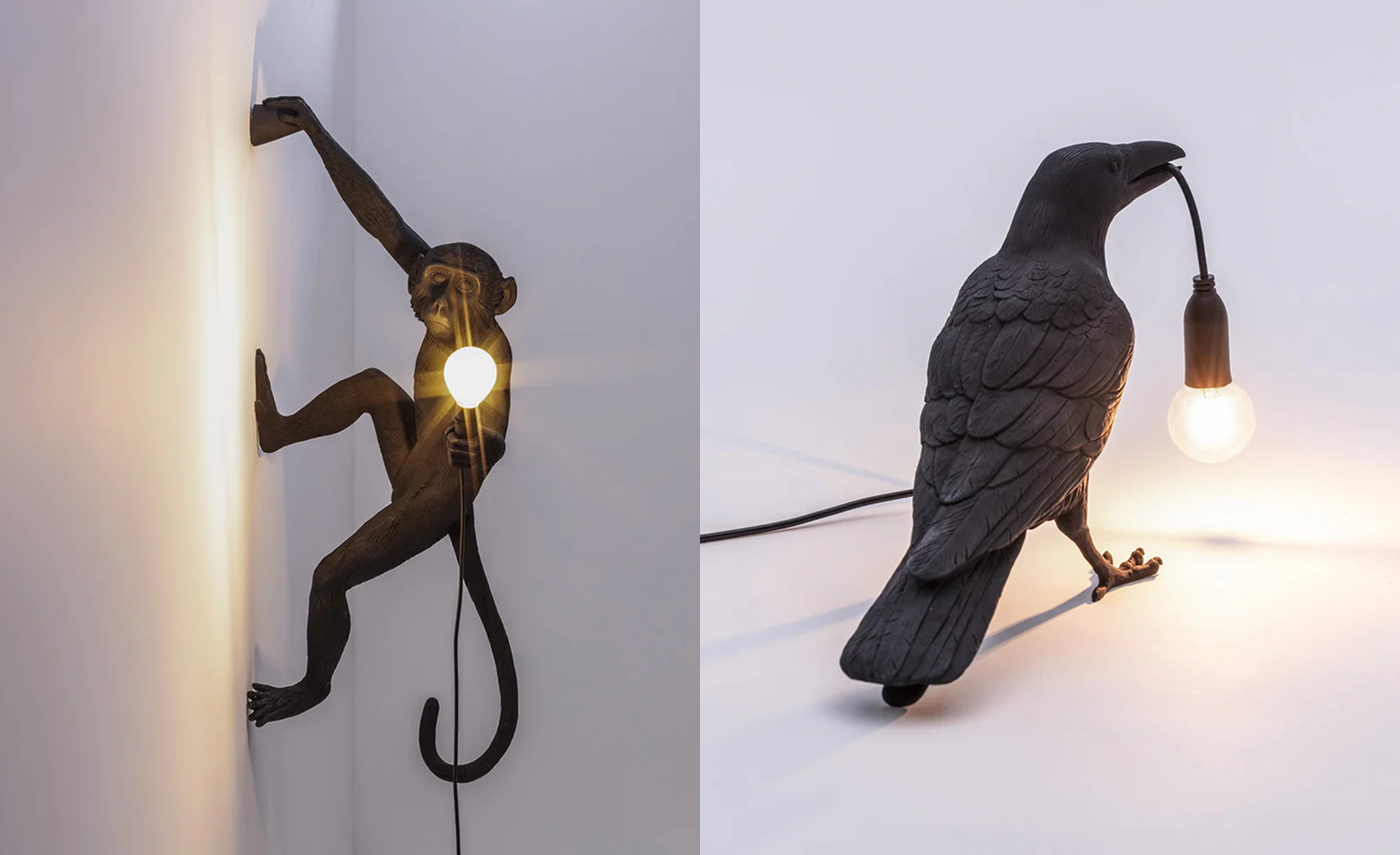 Бренд словно говорит: дом – это место, где можно позволить себе быть собой. Именно поэтому в коллекциях Seletti часто появляются коллаборации с художниками и дизайнерами, которые, как и он, выражают эмоцию, а не стремятся к идеальности. Одна из самых известных – серия Hybrid, в которой фарфор совмещает восточные и западные орнаменты как символ объединения разных культур. Или Monkey Lamps – лампы-обезьяны, которые тянут за собой свет, словно играют с ним.
