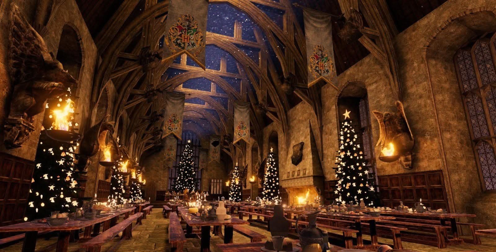 Новогодний интерьер Большого зала Хогвартса. Музей Гарри Поттера, Warner Brothers Studio, Лондон