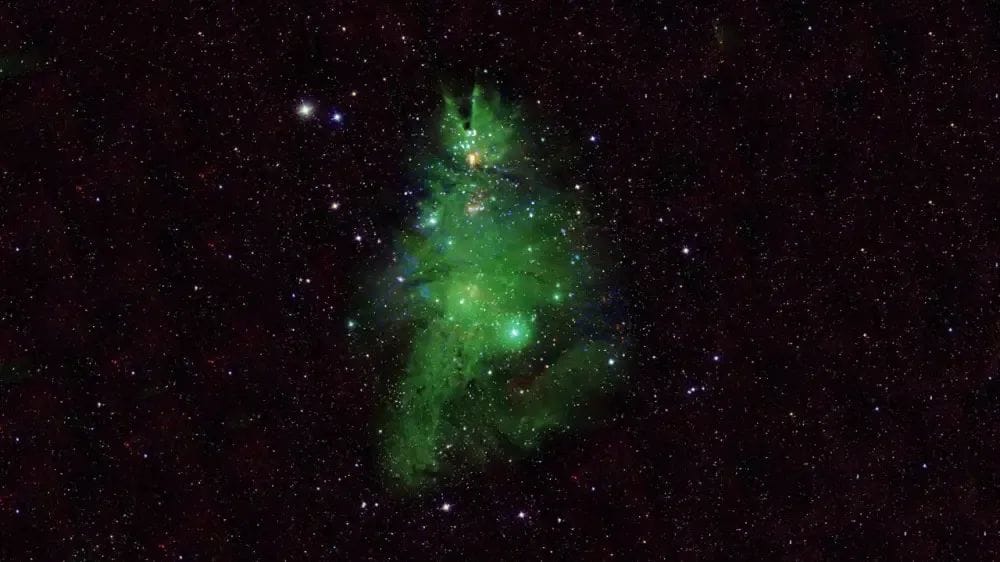 Звездное скопление «Рождественская елка», расположенное в нашей галактике Млечный Путь на расстоянии около 2 500 световых лет от Земли. Снимок сделан астрофотографом Майклом Клоу в ноябре 2024 года с телескопа в Аризоне, опубликован NASA 24 декабря 2024 г.