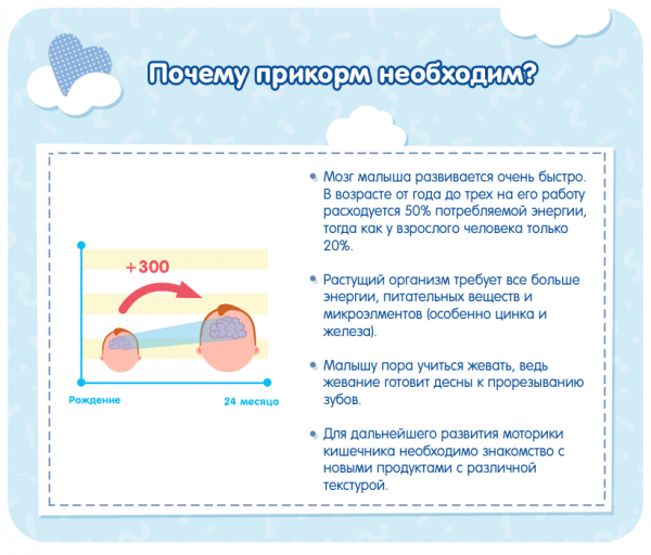 Важно! Растущий организм требует все больше энергии, и малыша необходимо знакомить с новыми продуктами