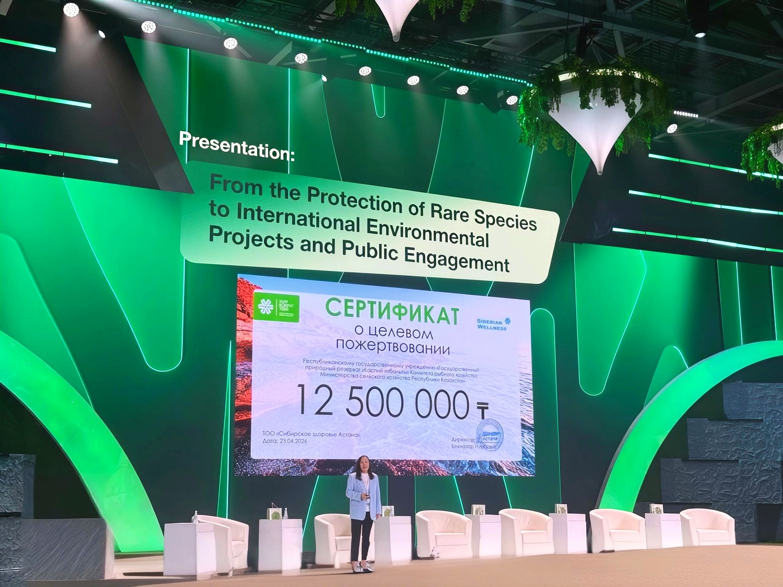Подписание договора о сотрудничестве ради сохранения краснокнижного вида между компанией и Республиканским государственным учреждением «Государственный природный резерват «Каспий итбалығы» Комитета рыбного хозяйства Министерства сельского хозяйства Республики Казахстан» состоялось 22 апреля. Об этом было объявлено 23 апреля на RES 2026 EXPO, в рамках Регионального экологического саммита Центральной Азии – РЭС-2026, на котором руководитель природоохранных проектов корпоративного Фонда «Мир Вокруг Тебя» Siberian Wellness Лариса Буянтуева выступила с докладом о сохранении каспийской нерпы.